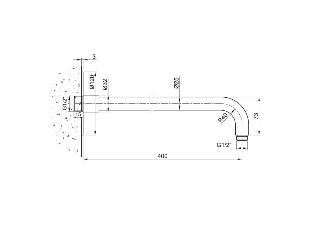 Sprchové ramínko kulaté, 380mm, chrom