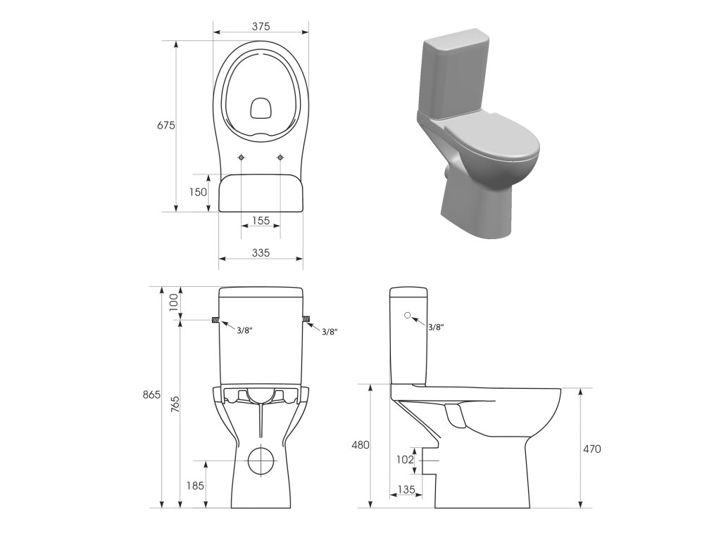 JOSE WC kombi, dvojtlačítko 3/6l, zadní odpad, bílá