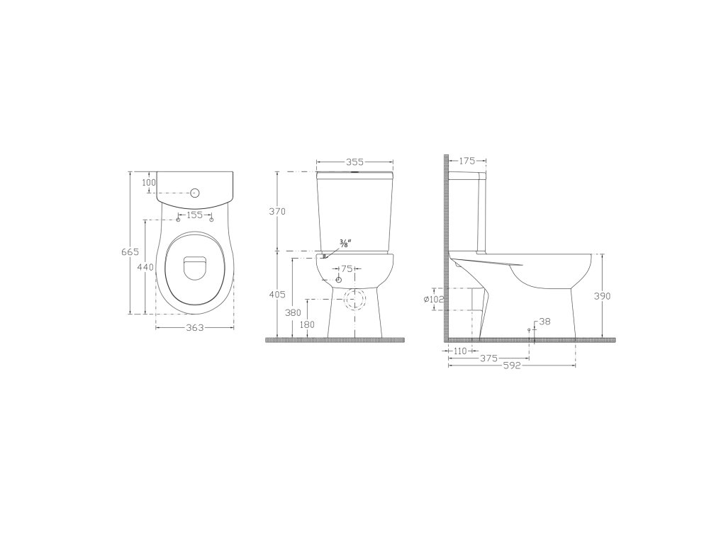 PACO WC kombi, Rimless, spodní/zadní odpad, černá mat