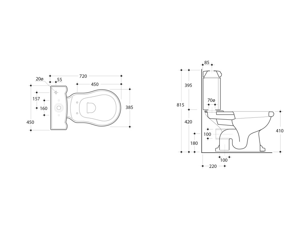 PACO WC kombi, Rimless, spodní/zadní odpad, bílá