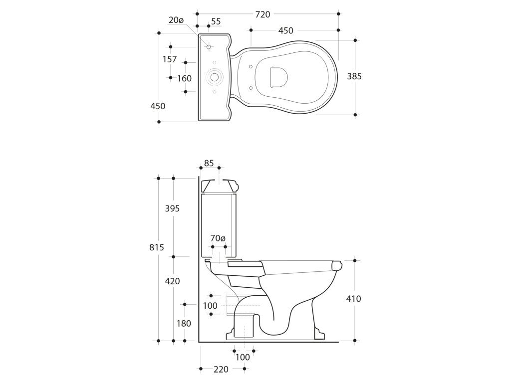 PACO WC kombi, Rimless, spodní/zadní odpad, bílá