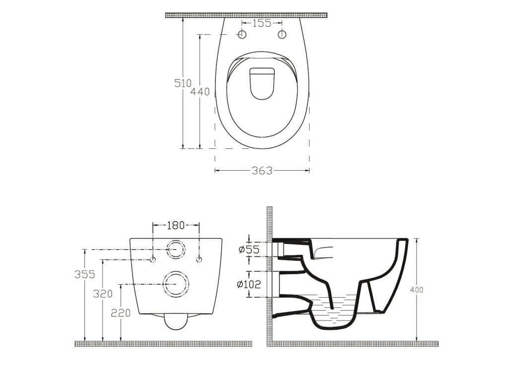 Závěsné WC TAURUS s podomítkovou nádržkou a tlačítkem Schwab, bílá