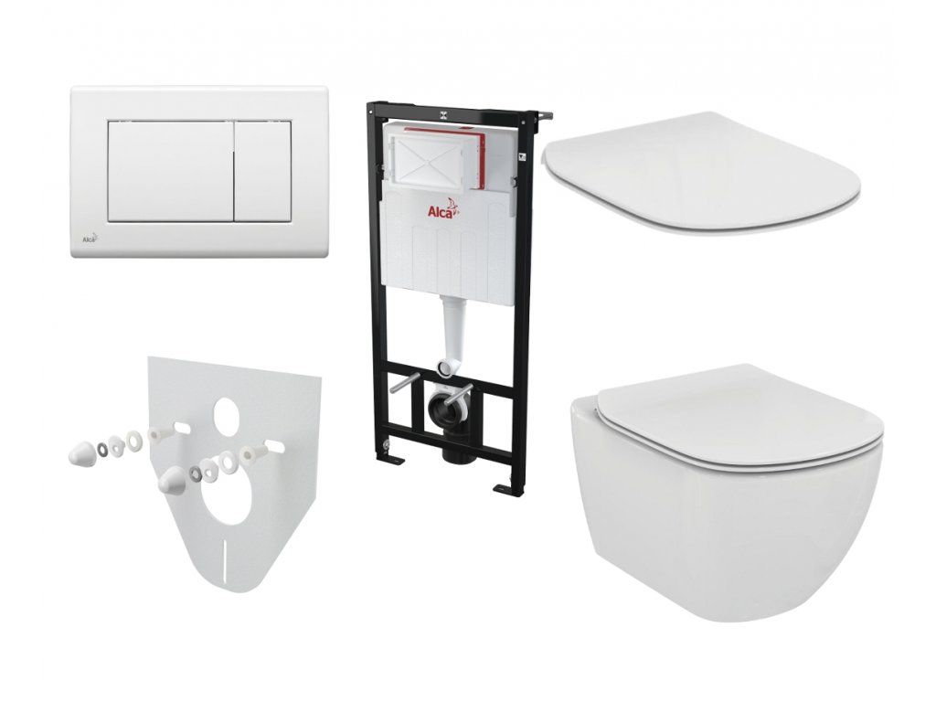 Alcaplast Sádromodul set do sádrokartonu s bílým tlačítkem, klozet a sedátko Ideal Standard, hluboké splachování, AM101/1120.SET.3