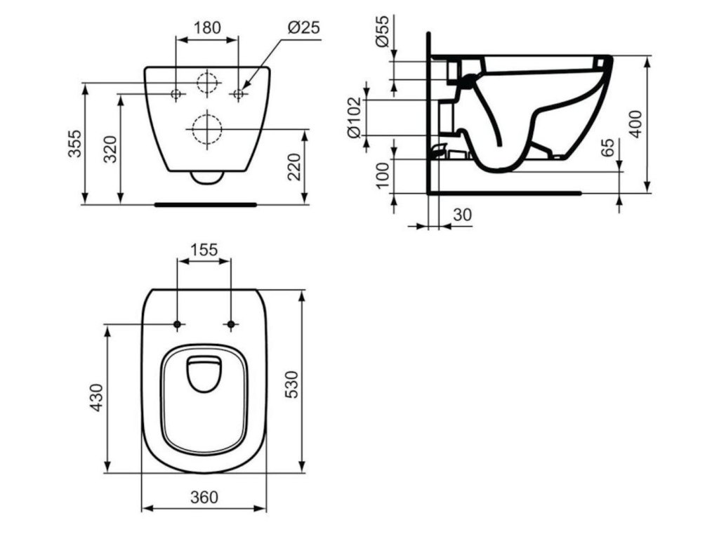 WC závěsné Ideal Standard Tesi zadní odpad (T007801)
