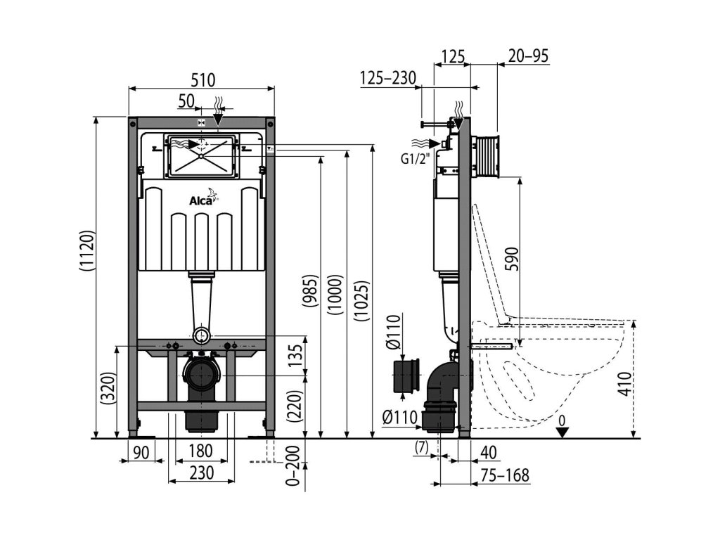Předstěnový instalační systém Alcaplast pro suchou instalaci (do sádrokartonu) AM101/1120