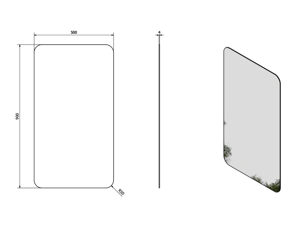 ISHAPE zrcadlo s broušenou hranou 50x90cm, zakulacené rohy, CU free