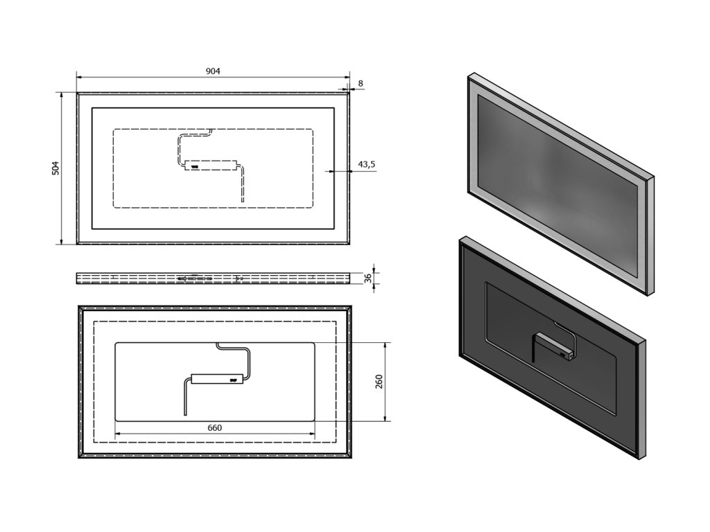 Zrcadlo s policí 40x65cm, CU free, černá mat