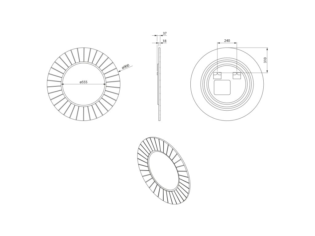 LUMIRO STRIP kulaté zrcadlo s LED osvětlením v rámu ø 90cm, agila