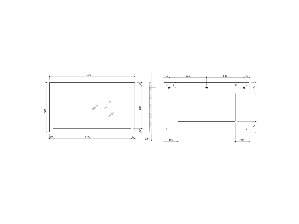 KORIN STRIP zrcadlo s LED osvětlením a policemi 60x70x12cm