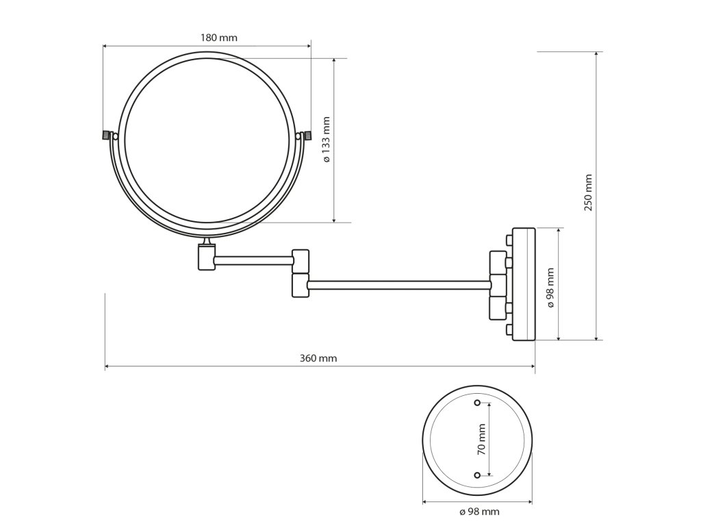X-ROUND E kosmetické zrcátko závěsné, Ø 200mm, oboustranné, chrom