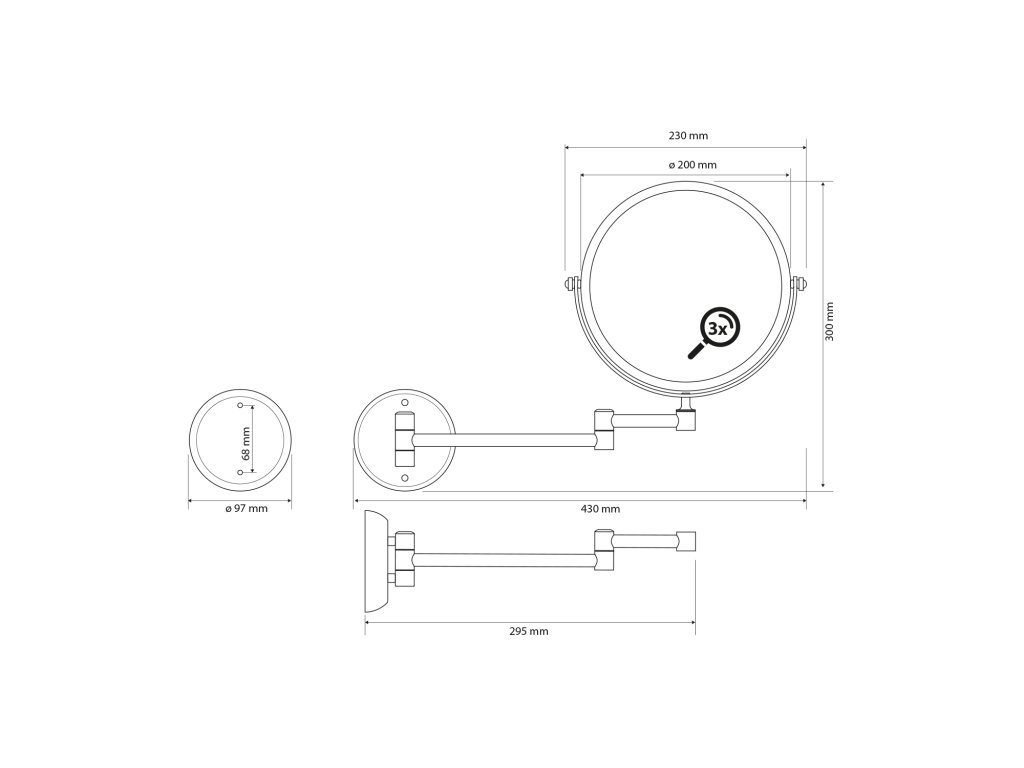 X-ROUND kosmetické zrcátko závěsné, Ø 200mm, oboustranné, chrom