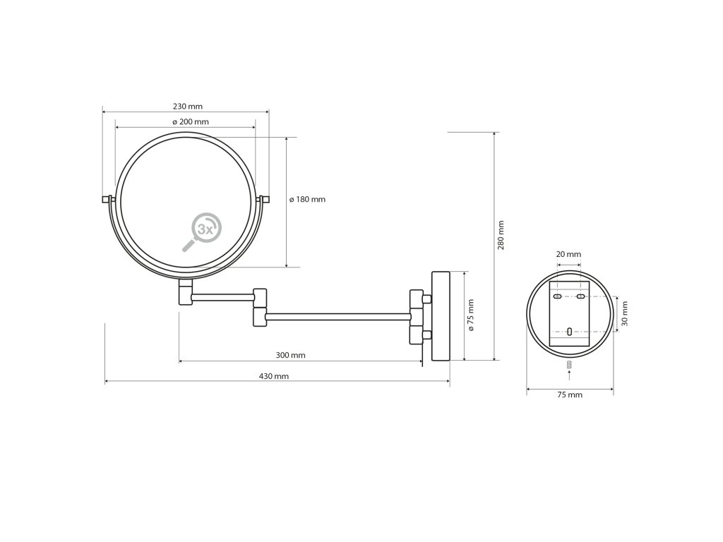 X-ROUND BLACK E kosmetické zrcátko závěsné, Ø 200mm, oboustranné, černá mat